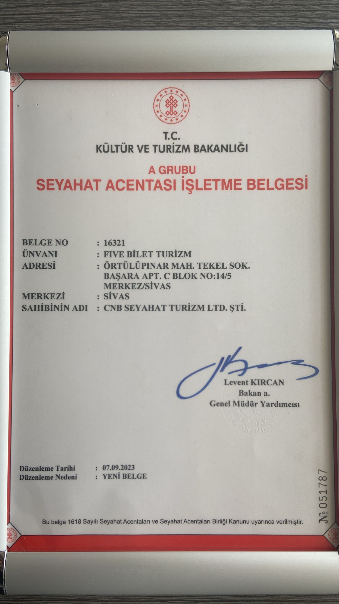 TÜRSAB BELGESİ